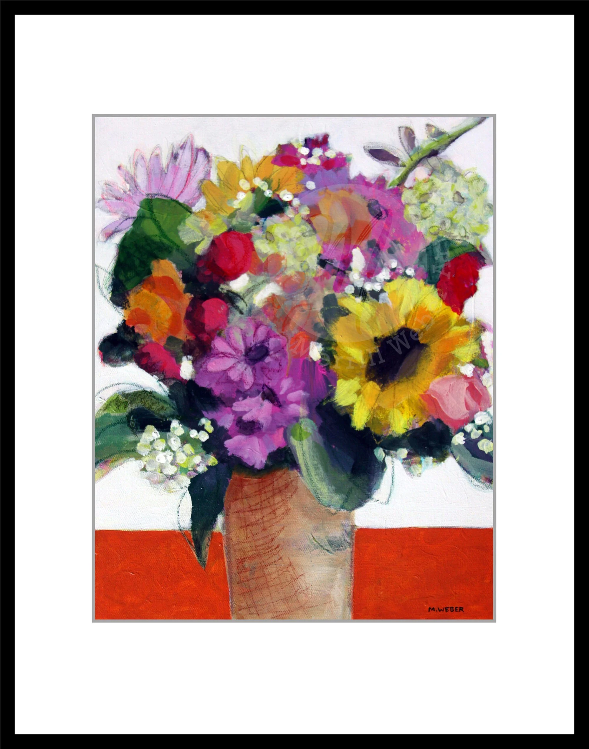 Beautiful floral fine art gicleé print from the mixed media painting, "Betty Ann Goes to the Dance," by fine artist, Merrill Weber.